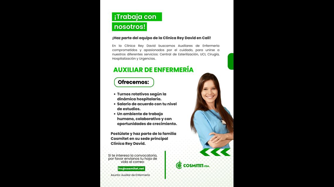 📨 Si cumples con el perfil y quieres hacer parte de nuestro equipo, postúlate ahora y únete a la misión de brindar salud con calidez y excelencia.